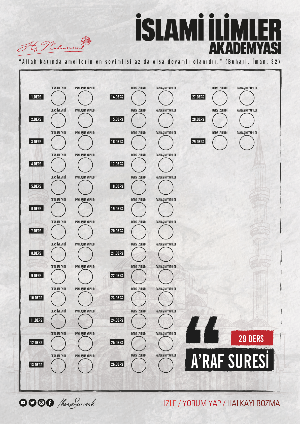 29 video dersten oluşan bu halkada İhsan Şenocak Hoca A'râf suresini tefsir etmektedir.